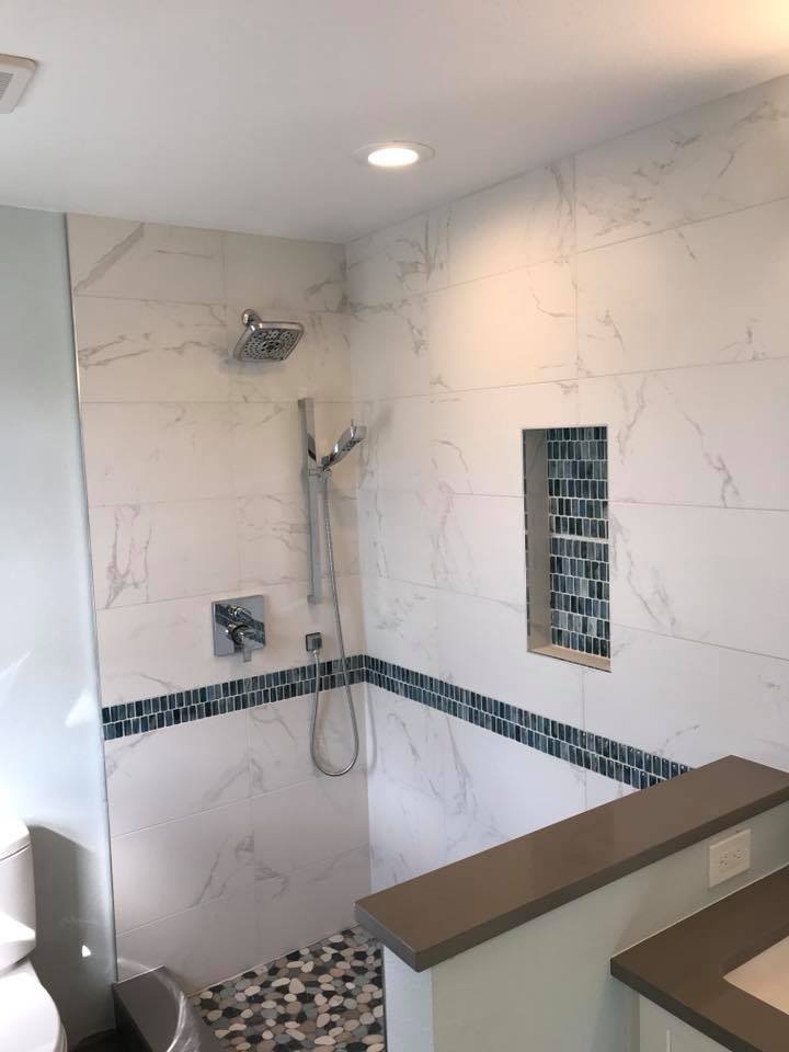 - Gut and Replace: In this case, you’ll gut the room down to the studs and install all-new fixtures and finishes. Bathroom remodels at this level may involve replacing plumbing fixtures, adding a double vanity, or even upgrading to a walk-in shower.